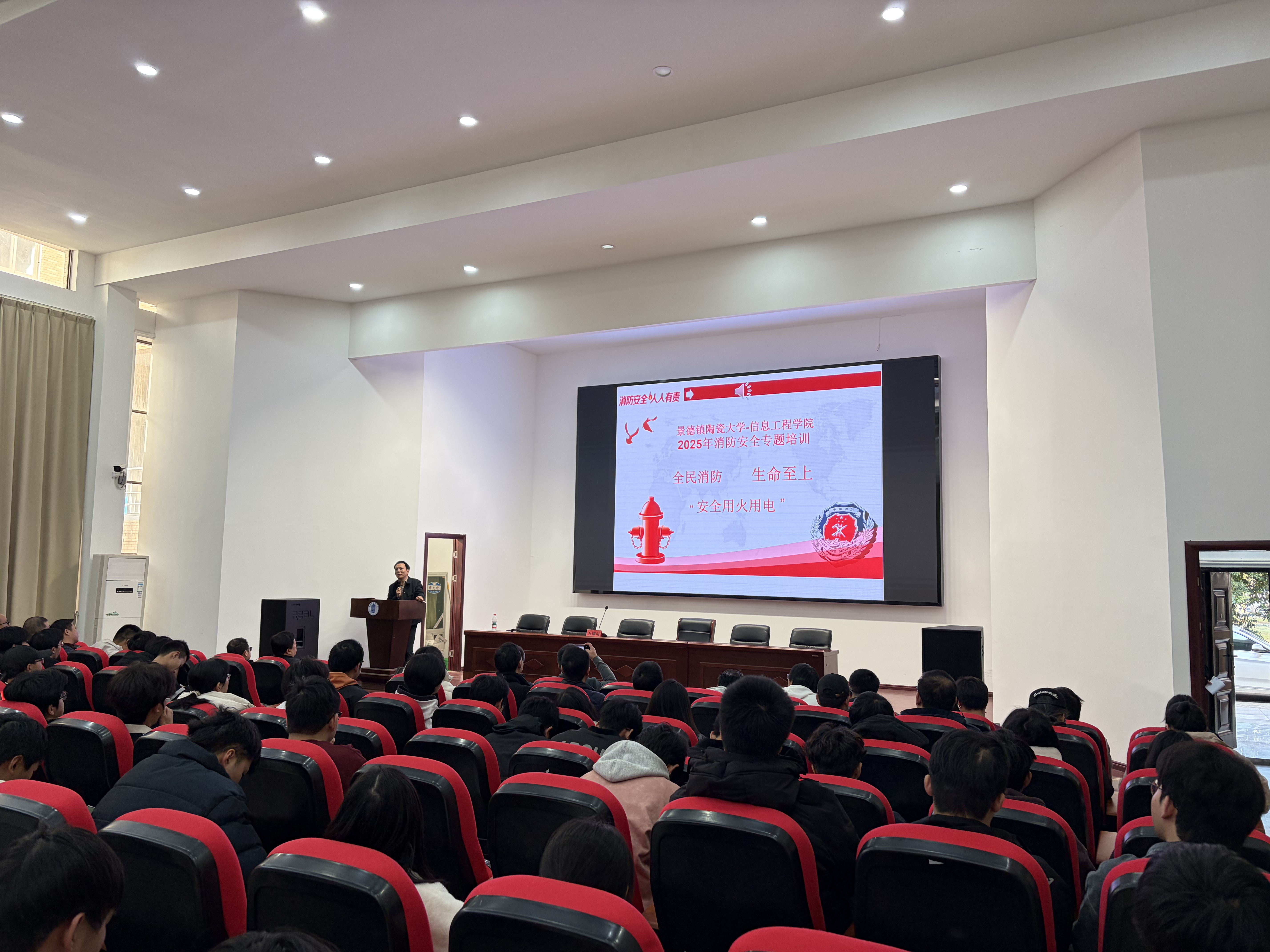 为深入贯彻落实平安校园建设工作要求,强化师生安全防范意识与应急处置能力,12月17日,信息工程学院以“以实操练硬功·以演练筑防线”为主题,成功开展安全教育主题党日活动暨消防安全演练。景德镇陶瓷大学党委常委、副校长冯浩、保卫处有关负责人、学院党政领导班子、全体教师、学生党员代表共同参与,以理论学习+实操演练的形式,为青春成长筑牢安全屏障。