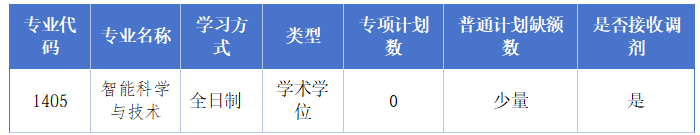 2. 调剂专业需满足第一志愿报考智能科学与技术(1405)的学术学位硕士的考生,或第一志愿报考工学类(专业代码前两位为08)的学术学位硕士或专业学位硕士的考生。